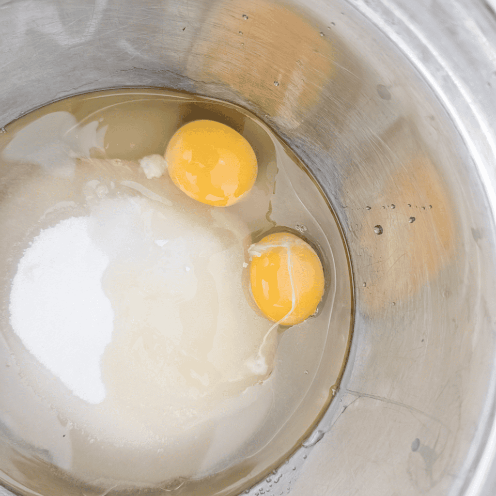 - In your mixing bowl beat the oil and sugar together.½ Cup Vegetable Oil, 1 Cup Sugar