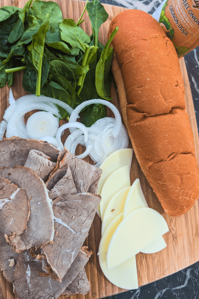 This Subway-style roast beef sub sandwich is an easy homemade version of a deli favorite. Made with thinly sliced roast beef, provolone cheese, crisp onions, fresh spinach, and sweet onion dressing, it comes together in just minutes.
