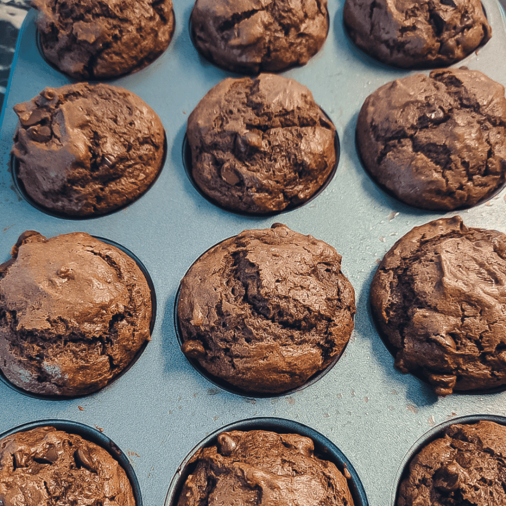 What changes is how that batter bakes. Most standard muffin recipes, like these blueberry or chocolate muffins, work across all pan sizes without changing the batter.