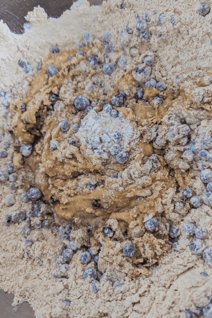 All-purpose flour: Helps balance the spelt flour so the muffins stay soft and light. It’s also used to coat the frozen berries so they distribute evenly in the batter.